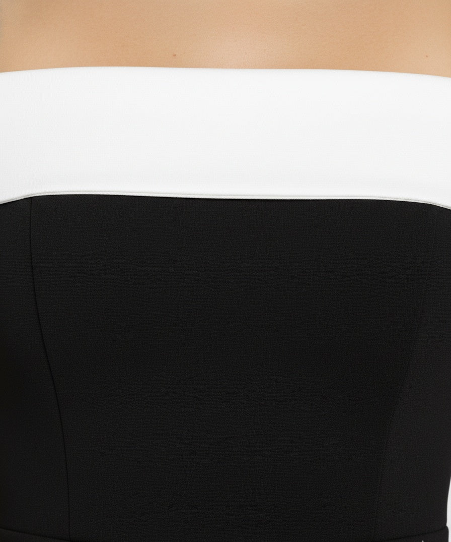 Design: A timeless black and white color block with a bold, backless twist—made for elevated evenings and unforgettable entrances.